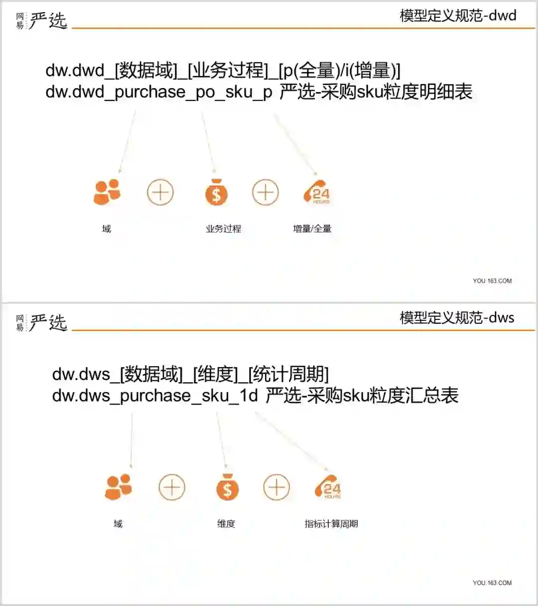 模型设计规范,目的是统一数据开发对模型的命名定义。通过域+更新方式,域+维度+更新周期的方式来完成。