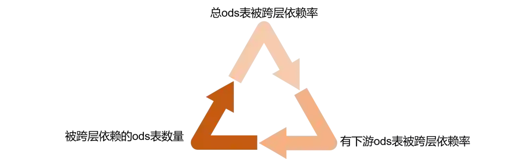 衡量数仓建设水平可以通过以下3个指标:总ods表被跨层依赖率,被跨层依赖的ods表数量,有下游ods表被跨层依赖率三个指标来完成。