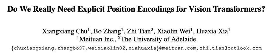1.Do We Really Need Explicit Position Encodings for Vision Transformers? https://arxiv.org/pdf/2102.10882.pdf