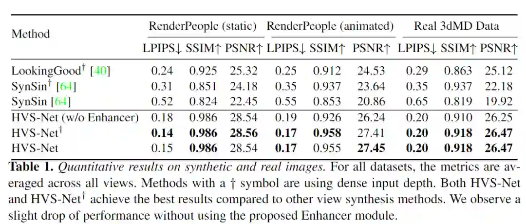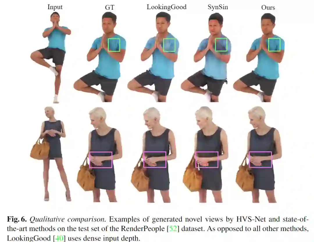 HVS-Net将人的上半身的单一稀疏RGB-D图像和目标摄像机姿势作为输入,并从目标视角生成高分辨率的渲染。