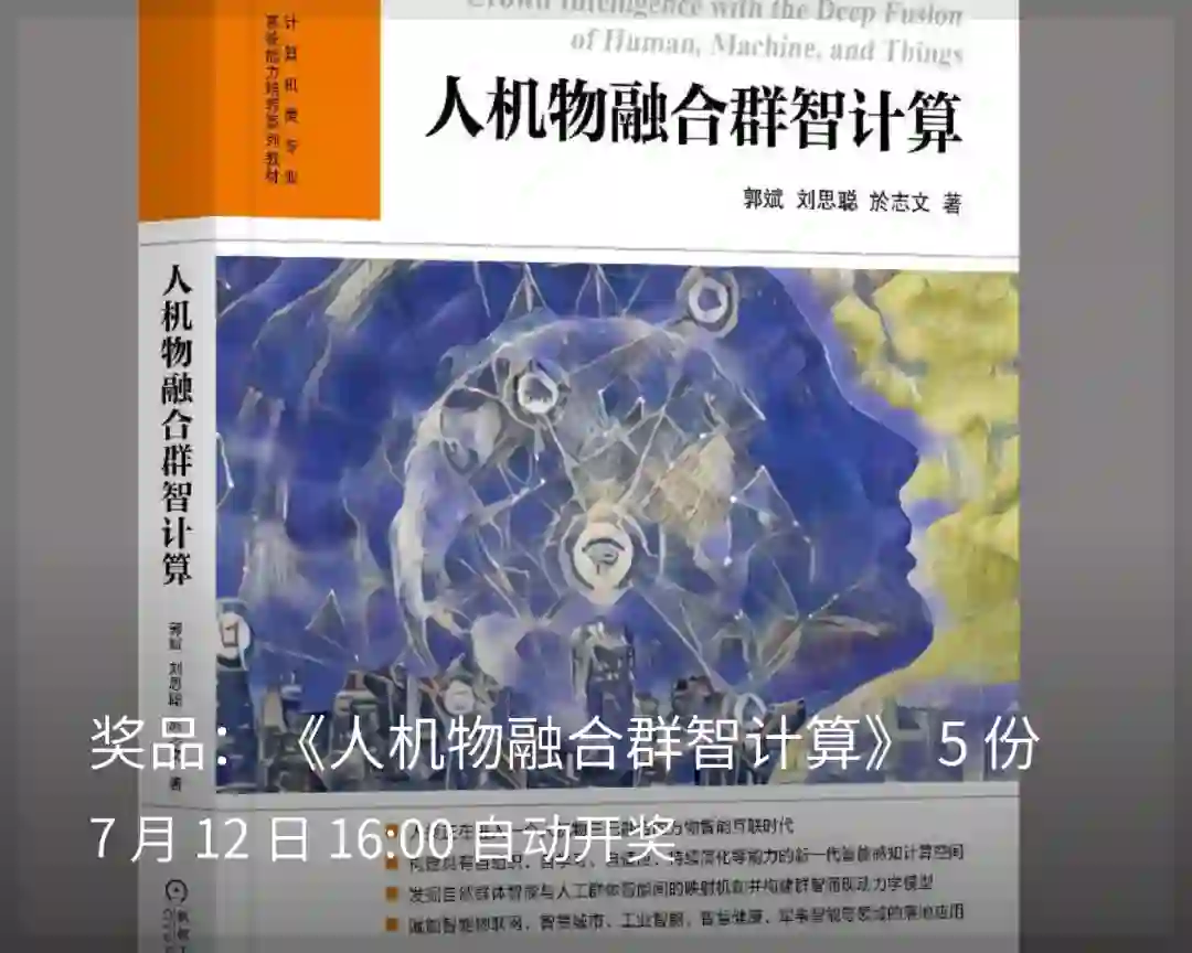 点击下方链接参与抽奖,我们将抽取 5 名 InfoQ 的粉丝朋友们分别送出一本《人机物融合群智计算》,要想了解更多有关万物智能互联网的相关话题,就来读一读吧! 让我们一起进入到人机物三元融合的万物智能互联时代吧!