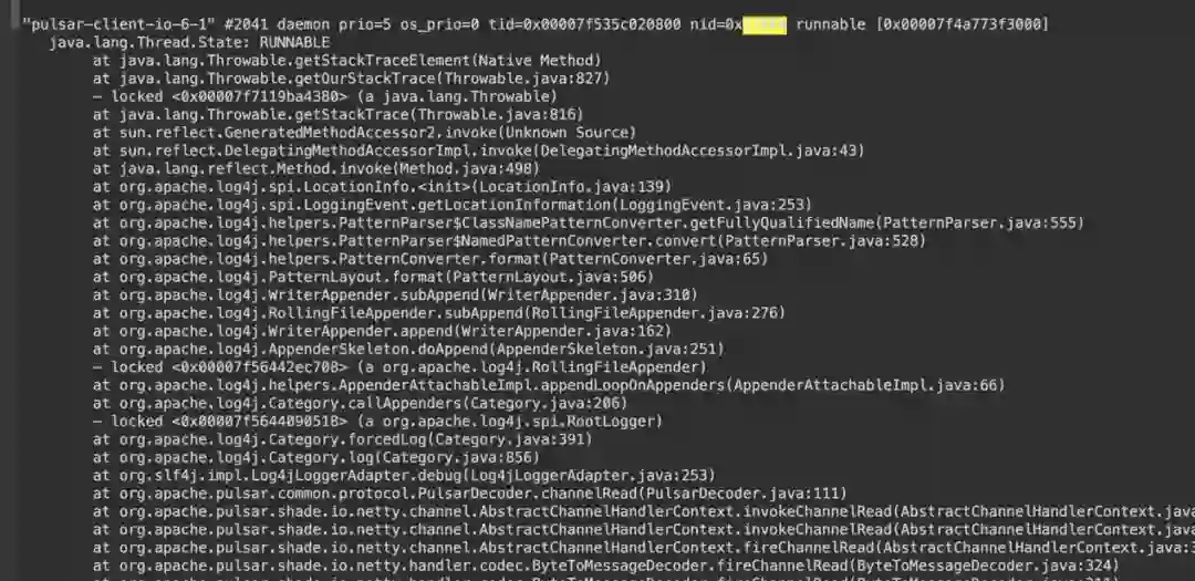 如果经过上面的步骤,问题还没有分析清楚,则需要再排查下 Broker 端的线程状态,主要关注 pulsar-io、bookkeeper-io、bookkeeper-ml-workers-OrderedExecutor 线程池的状态,查看是否有线程池资源不够或者线程池中某个线程被长期占用。