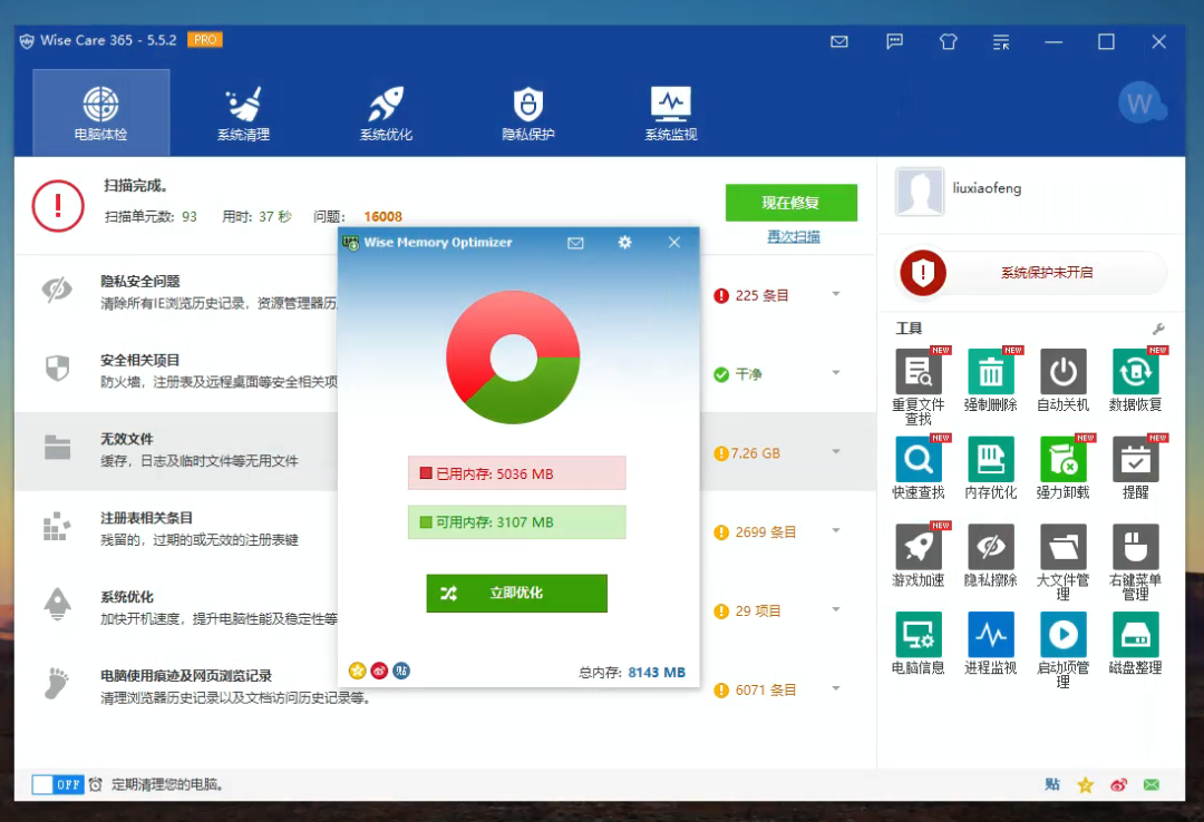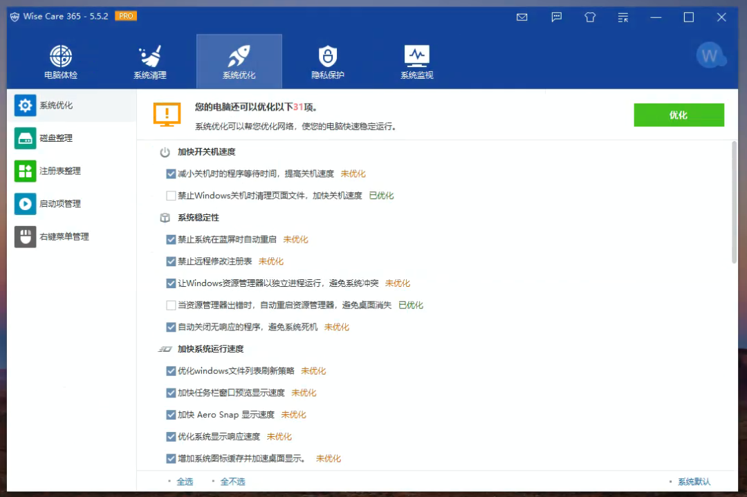 如果你在上述功能的基础之上还有更深层的系统维护需求,则可以考虑付费使用 Wise Care 365 的专业版本。