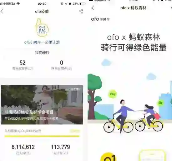 另外,摩拜与 ofo 均在公益上面做出了动作。不管是 ofo 的蕾哈娜站台的奖学金项目和阿拉善植树项目,还是摩拜与嫣然天使基金合作的公益项目都是值得赞扬的。
