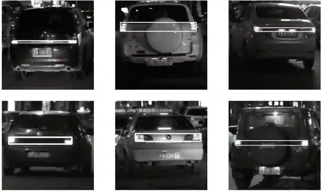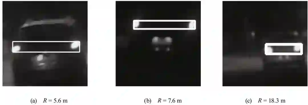 通过对不同车型试验,本方法的视觉验证可以实现对不同大小、形状的尾灯的验证;在实际行车时,会出现前相邻车辆开启转向灯、前后车辆距离过近造成前相邻车辆的尾部会出现大面积反光、摄像机晃动的情况,这几种干扰状态下视觉验证也可以实现对尾灯的验证。