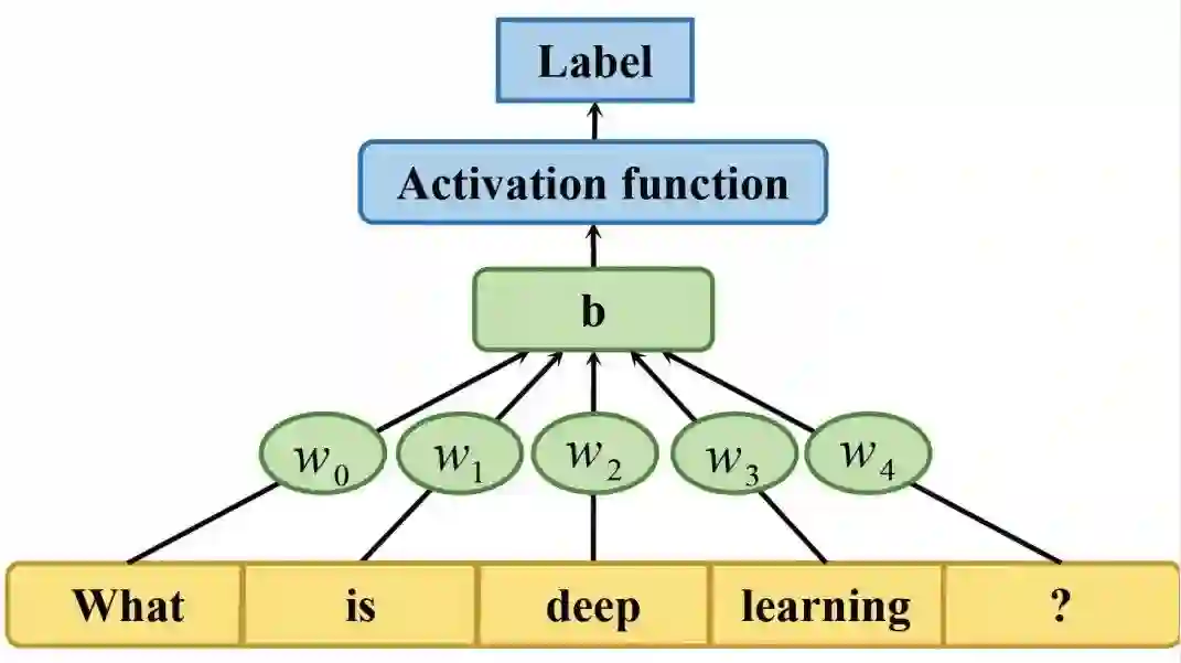 多层感知器(MultiLayer Perceptron,MLP),有时被俗称为 "vanilla "神经网络,是一种简单的神经网络结构,用于自动捕捉特征。如图 4 所示,我们展示了一个三层的MLP 模型。它包含一个输入层,一个所有节点都有激活函数的隐藏层以及一个输出层。每个节点都用一定的权重𝑤𝑖连接。它将每个输入文本视为一个词袋,与传统模型相比,MLP 在许多文本分类基准上都取得了较好的性能。