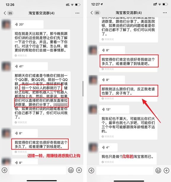 有一些淘宝客还会从同行的社群引流。我在淘宝客群接受培训时,就遇到了这样的事情。