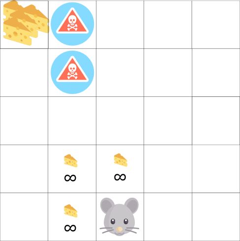 在这个游戏中,我们的鼠标可以有无限量的小奶酪(每个+1)。但在迷宫的顶端有一大片奶酪(+1000)。