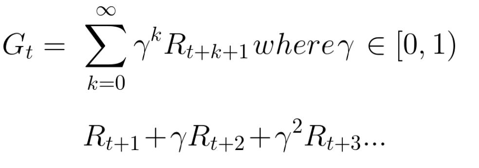 但是,实际上,我们不能光添加这样的奖励。早期(在游戏开始时)提供的奖励更有用,因为它们比未来奖励更好预测。