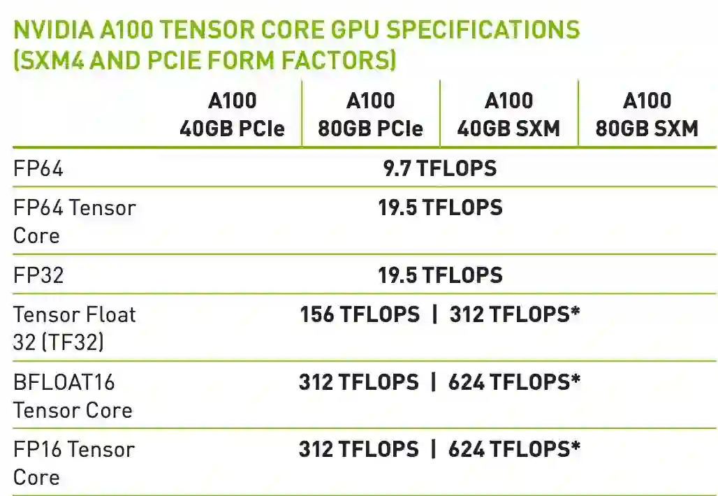 关于 FLOPS 还有一点要说,越来越多的机器学习加速器都有专门针对矩阵乘法的硬件配置,例如英伟达的「Tensor Cores」。