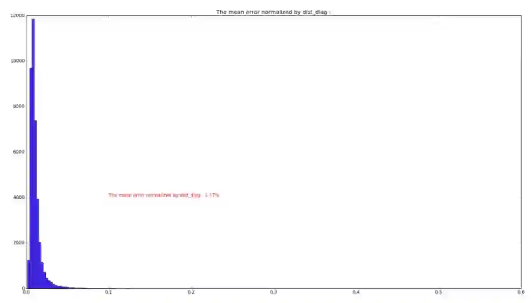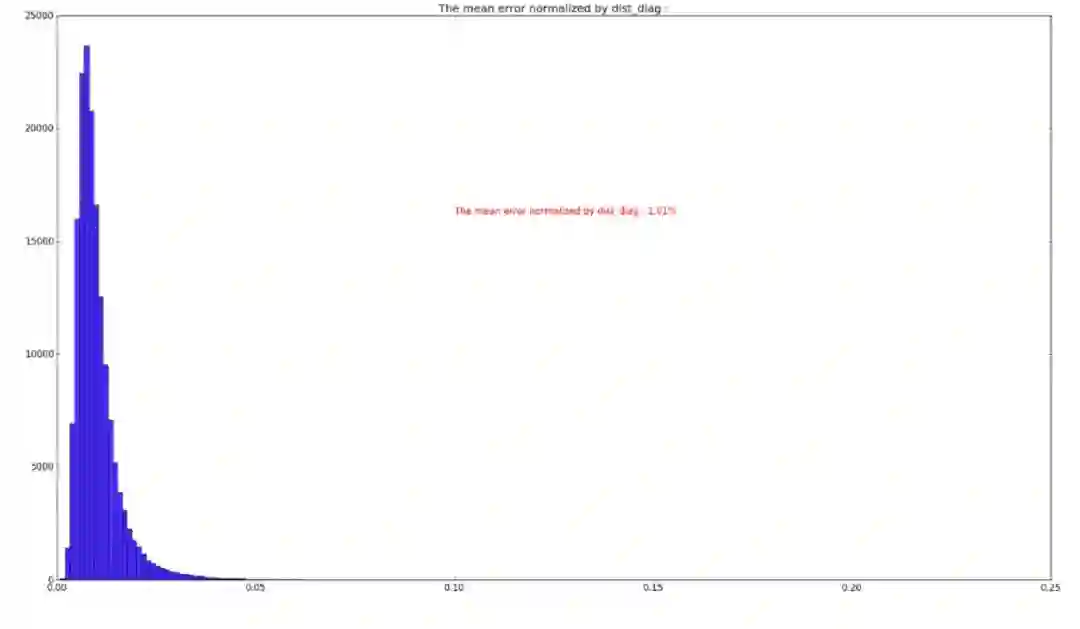 从误差分布图可以看到,误差分布呈高斯分布状,训练与测试的分布形状基本一致,通过误差分布图可知,在训练集中,绝大部分误差小于 5%,因此在选取 level_1 的裁剪阈值时,可参照此图进行调试。