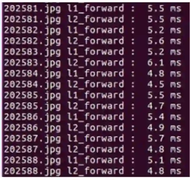 level_2 训练完毕,即可进行级联检测,forward 耗时如图所示: