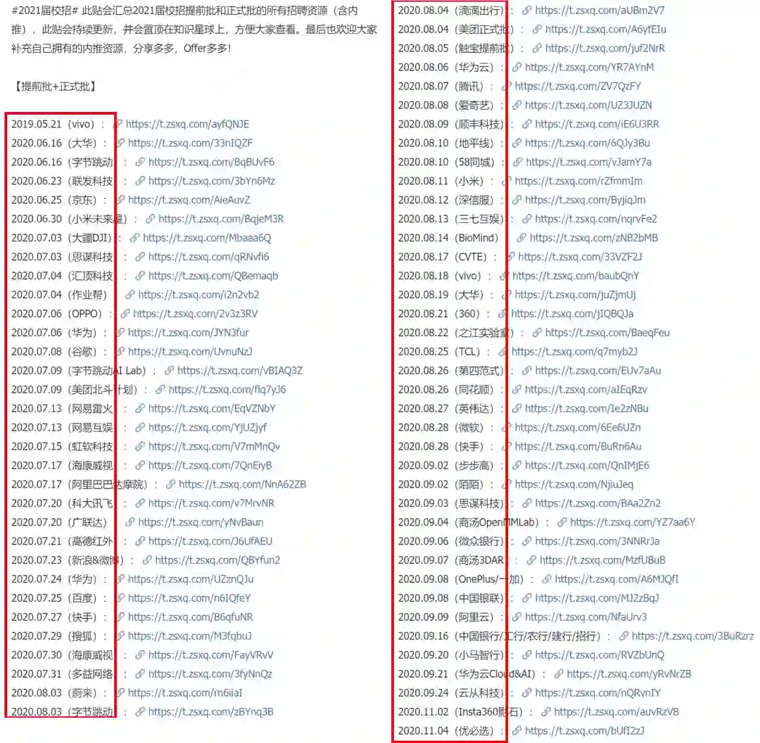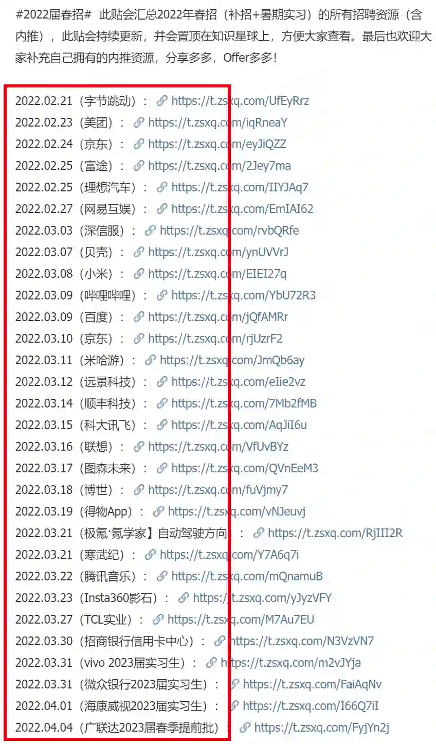 2022届和2021届校招的海量内推部分截图如下: