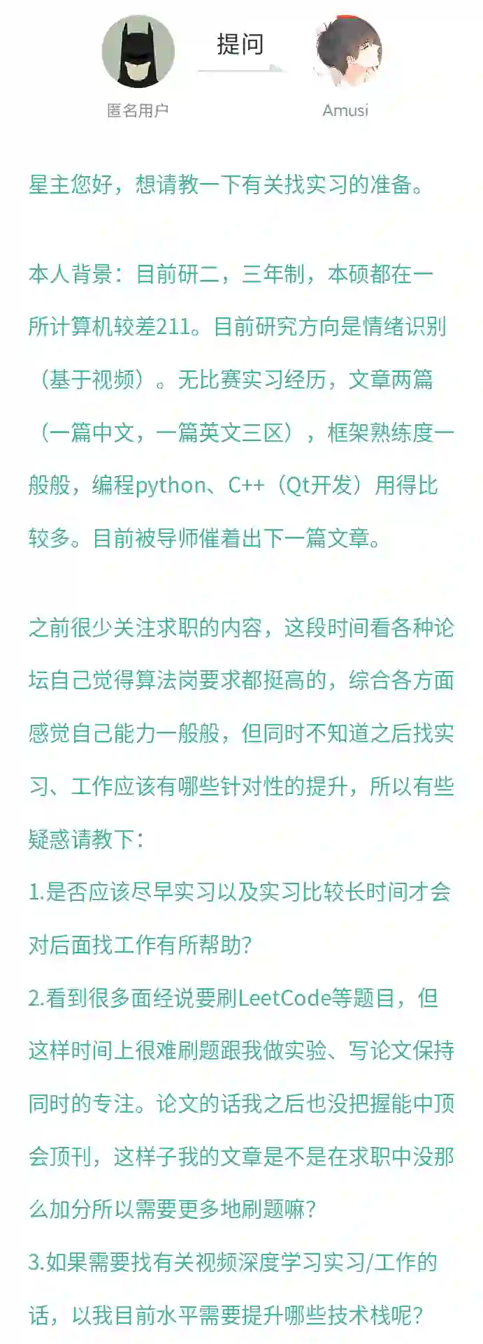 注:因为星球里人蛮多的,所以建议大家匿名提问,防止"隐私泄露"