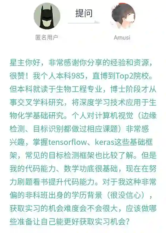 我Amusi 每天都会在求职群里发帖/交流,回答问题,分享面试题,分享面试心得,分享内推信息,分享学习资料等。划重点!星球分享的资料和问答已经超过3800条!