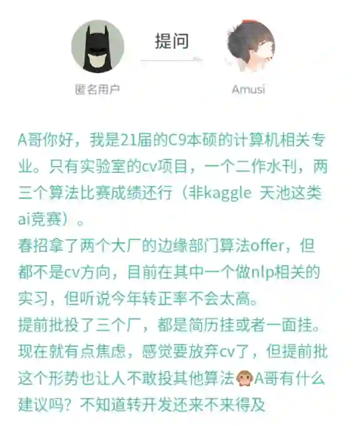 通常校招提前批会有精英专场或者大咖专场,而且拿到SP/SSP的机会相对高一点,最关键的是:越往后,很多岗位的hc就没有了。今年算法岗,乃至开发岗难度相较往年都是增加很多的,hc收缩是肯定的,而且实习生转正又占一部分。如果你是今年或者明年找工作,想了解到最新的招聘信息和求职攻略, Amusi 推荐大家加入AI算法岗求职群(不限于算法、开发、转行),目前已汇集 4000 多人,多解决一个求职问题,多掌握一个知识点,多投递一个心仪岗位,可能就少踩一个坑,多一个Offer机会。