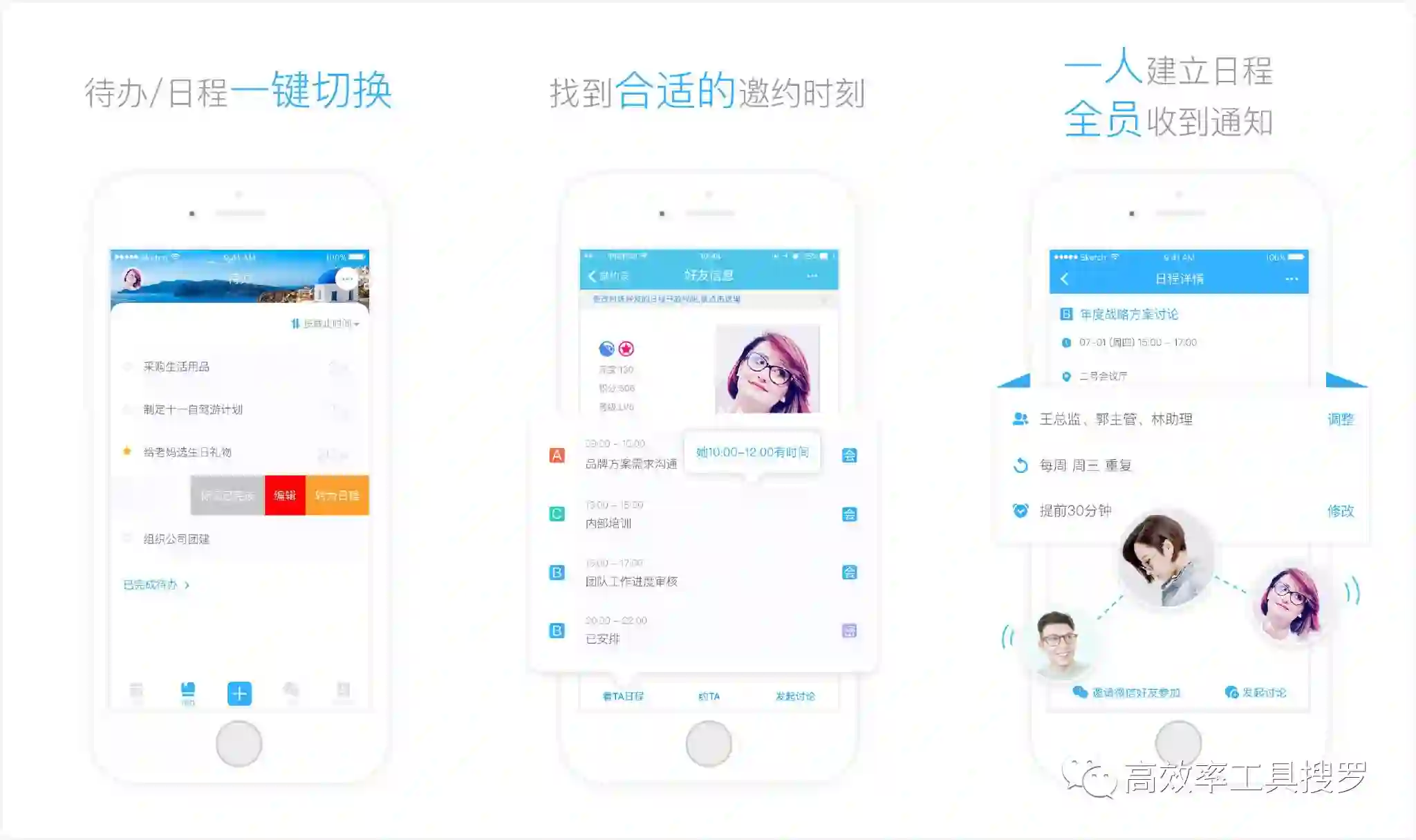 它还支持日程共享,你可以通过微信邀请好友加入日程,也可以创建多人日程,全员提醒,让团队协作更高效。