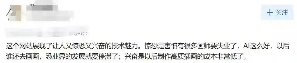 还有网友表示:「AI 绘画可以打败大部分画手了。虽然现在有版权问题,但这说明以后 AI 作画真的可以挤掉大部分画手的饭碗。」