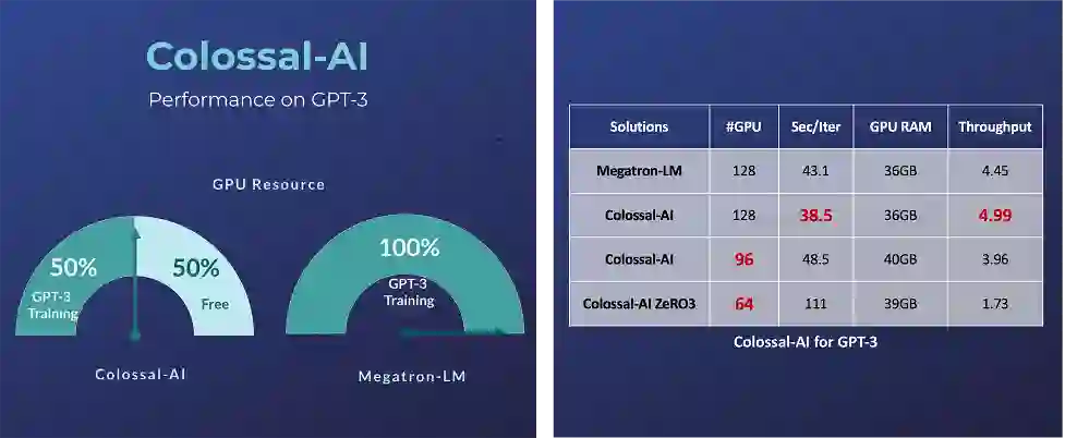 对于超大AI模型,如GPT-3,相比英伟达方案,Colossal-AI仅需一半的计算资源,即可启动训练;若使用相同计算资源,则能提速11%,可降低GPT-3训练成本超百万美元。