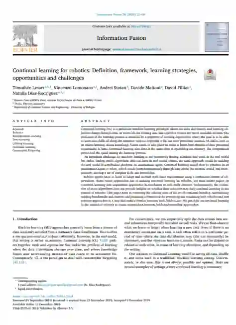 对于机器人技术和非机器人技术领域,我们保持了定义、框架、策略和评估的一般性。尽管如此,最后一节,机器人持续学习(第6节)受益于前几节的内容,以呈现机器人领域持续学习的特殊性。