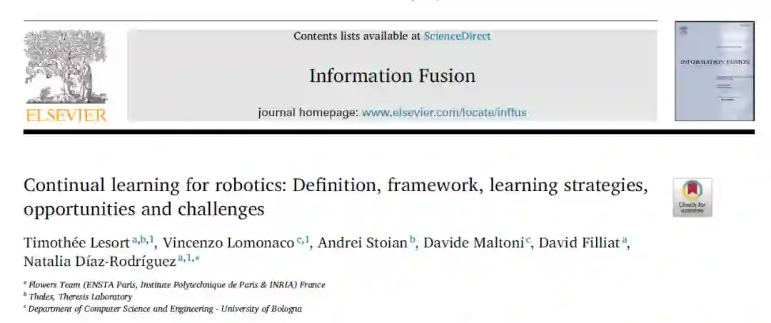 后台回复“CLR” 就可以获取《INRIA最新《持续学习机器人技术:定义,框架,学习策略,机会与挑战》综述论文,17页pdf》专知下载链接