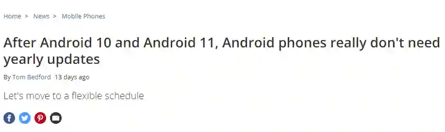 这不,外媒TechRadar甚至发表文章,质疑谷歌一年一度的系统版本更新是否有必要。