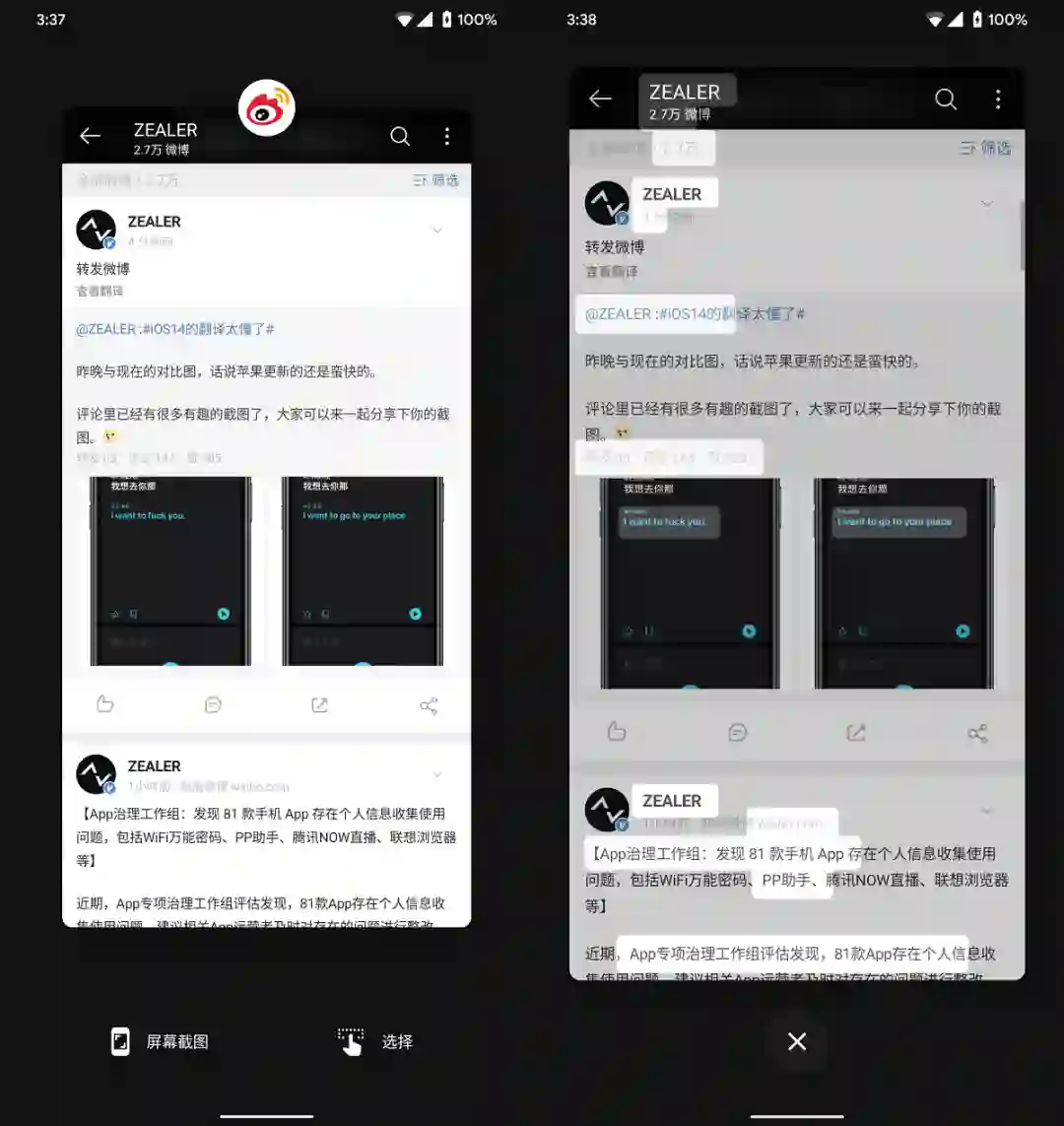 Android 11带来了一个全新的截屏交互界面,你可以看到一个带有预览和快捷操作按钮的新弹出式UI,并可快速对此图像进行编辑、分享。