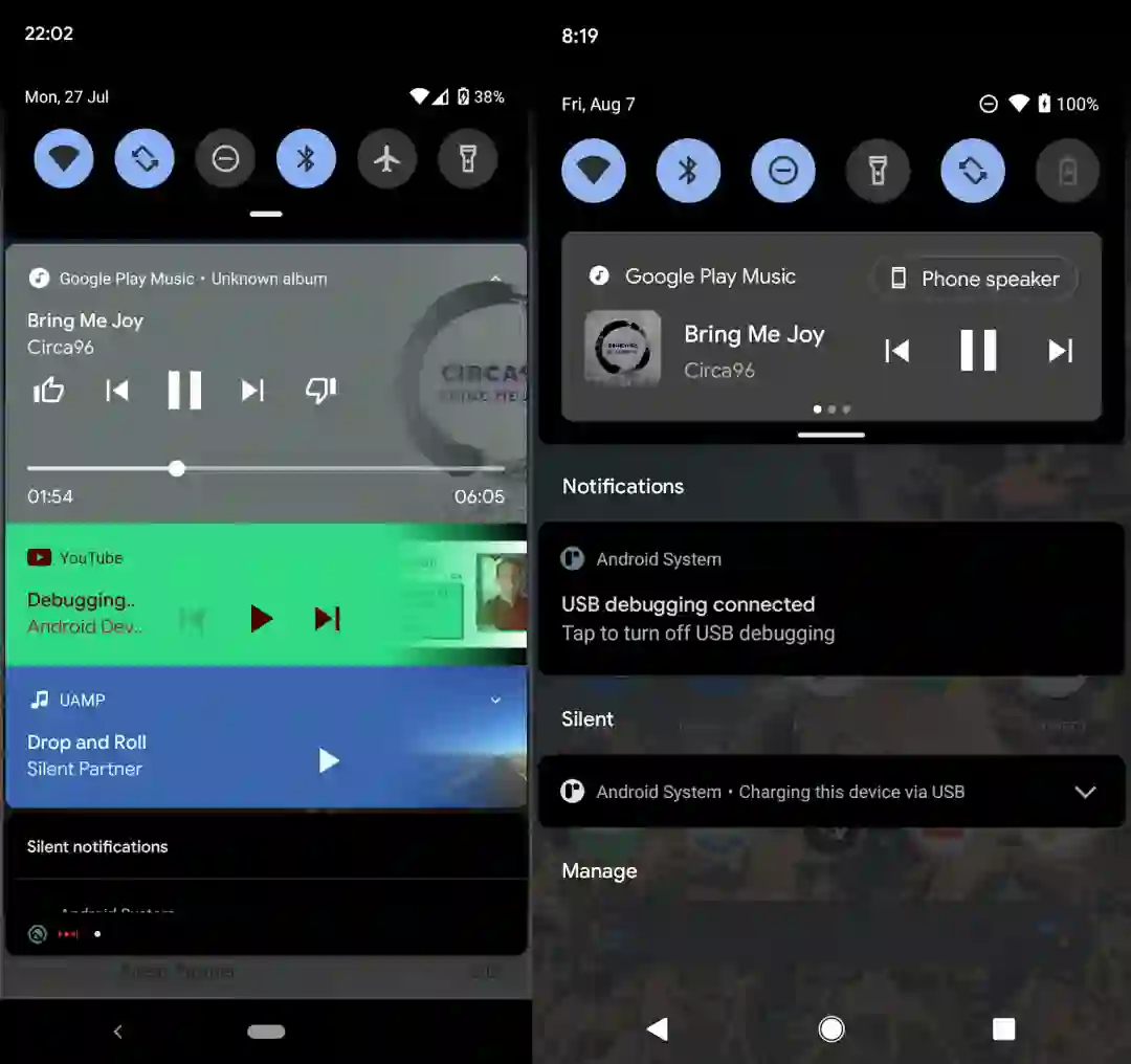 尽管小编很喜欢这一新设计,但遗憾的是,此前版本种媒体控制的渐变色通知条在这里被砍掉了。这个在Android 8.0开始引入的设计曾让小编欲罢不能,现在也只能道声再见了。