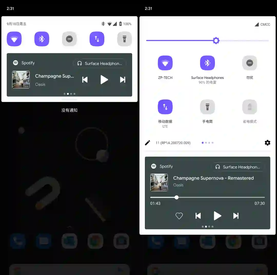 ▲Android 10(左)、Android 11(右)媒体控制对比