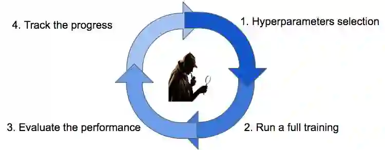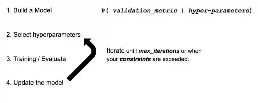 一切都以猜测一个不错的配置开始(步骤 1),然后我们需要等到训练完毕(步骤 2)以获得对相关度量标准的实际评估(步骤 3)。我们将跟踪搜索过程的进度(步骤 4),然后根据我们的搜索策略选择一个新的猜测参数(步骤 1)。