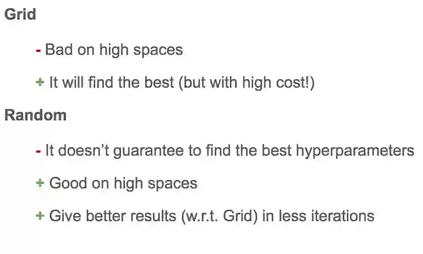 搜索所有可能的配置并等待结果去建立最佳配置:例如 C1 = (0.1, 0.3, 4) -> acc = 92%, C2 = (0.1, 0.35, 4) -> acc = 92.3% 等...