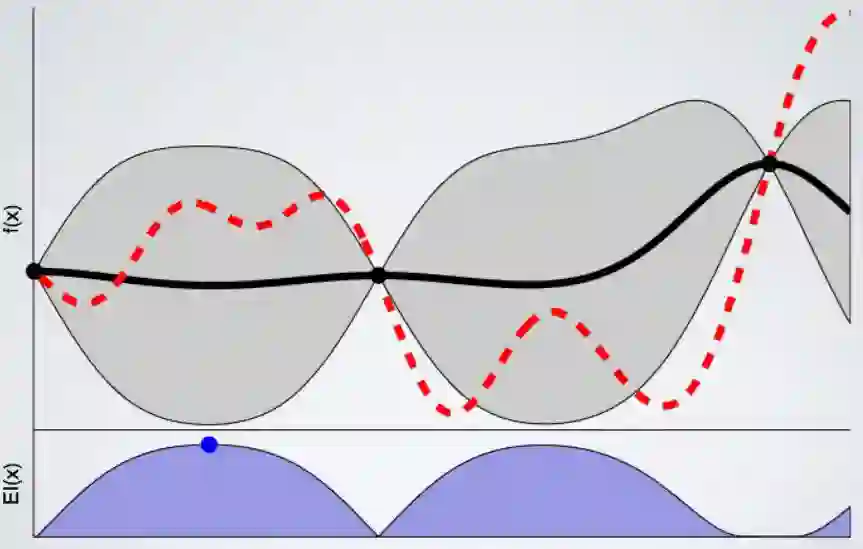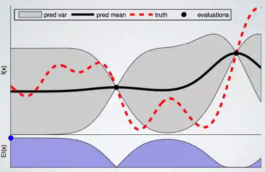 我们可以将高斯过程定义为代理,它将学习从超参数配置到相关度量的映射。它不仅会将预测转化为一个值,还会为我们提供不确定性的范围(均值和方差)。