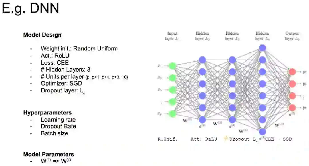 我们可能会同意学习率和 Dropout 率是超参数,但模型设计变量呢?模型设计变量包括嵌入,层数,激活函数等。我们应该将这些变量视为超参数吗?