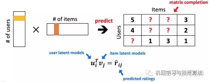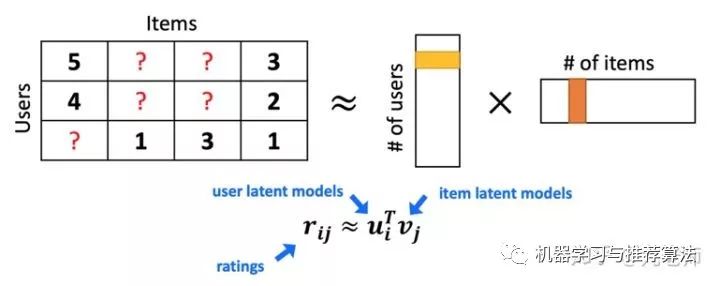 维的物品矩阵,每一列是物品的隐式向量表示,用户和物品向量的内积即为预估的评分。那如何进行分解呢?随机初始化矩阵,使用均方误差作为loss,梯度下降进行学习。这个过程中还可以加入正则项,降低泛化误差。由FunkSVD开始,基于Matrix factor(MF)的方法大放异彩。