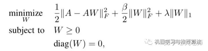 物品直接的相似度,除了上面的启发式算法,能不能通过数据本身学习所得?这就诞生了SLIM(Sparse Linear Methods)方法。矩阵 是