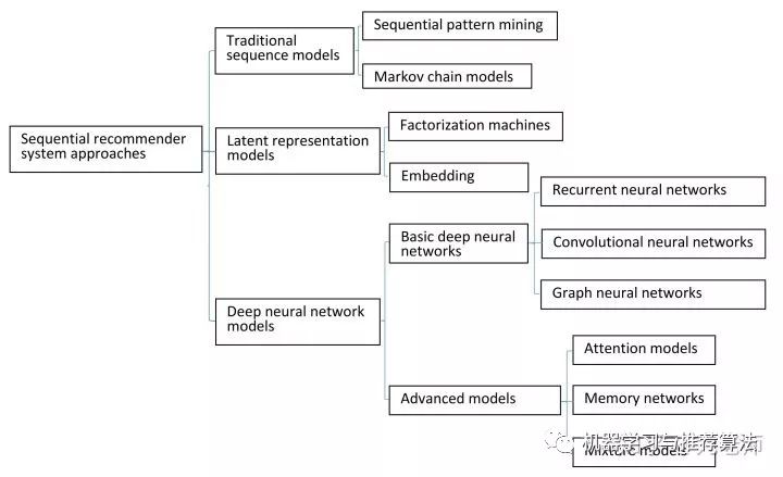 以前模型的输入形式有限,人们通过特征处理将数据组织成模型可以接受的形式;随着深度学习的发展,数据越来越倾向于保存其原有的形式,人们通过模型设计来学习有效的模式。在时间线的视角下,直接用深度模型结构建模序列,预测下一物品,形成了一个可以发挥想象力和燃烧算力的领域——Sequential/Session-base推荐。在2016年的时候,RNN是处理序列问题的标配,它从NLP领域走来,诞生了GRU4Rec算法。受到NLP领域Char-CNN启发,CNN的结构也逐渐用于建模序列结构,Attention机制大火之后,RNN+Attention,CNN+Attention,RNN+CNN+Attention被枚举了一遍。随着google老师的BERT取得NLP领域巨大成就,Self-Attention以及多层的Transformer结构开始成为序列建模的常规配置。最近的文章里,图神经网络(GNN),Memory networks,变分自编码器(VAE)也成为了序列推荐领域的深度乐高积木。