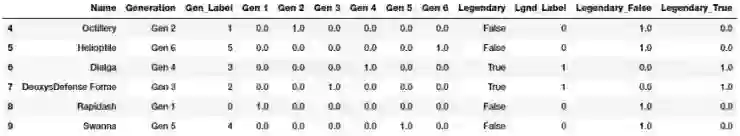 上面的输出清楚地表明,与虚拟编码中的零不同,属于第六代的神奇宝贝现在由 -1 向量表示。