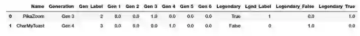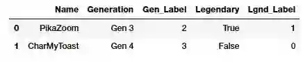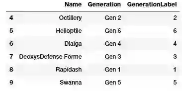 这里关注的属性是神奇宝贝的「世代(Generation)」和「传奇(Legendary)」状态。第一步是根据之前学到的将这些属性转换为数值表示。
