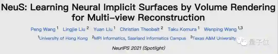 具体来说,这项研究的基本框架借鉴了NeurIPS 2021上的NeuS,一种把隐式神经标准和体积渲染结合起来的方法。