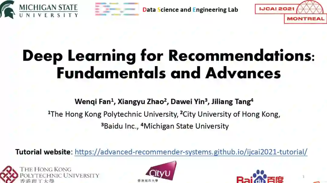 来自密歇根州立大学、香港城市大学、香港理工大学、百度的研究人员在IJCAI2021上讲述深度学习推荐系统的教程,非常值得关注!