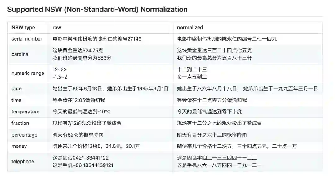 PP-TTS 提供了针对中文场景的语音合成文本前端优化方案:针对时间、日期、电话、温度等常见非标准词进行了文本正则化处理;开源了针对中文场景的轻声变调、三声变调和“一”“不”变调等字音转换( G2P )解决方案。在自建的文本正则化测试集上, CER 低至0.73%;以 CSMSC 数据集的拼音标注为 Ground Truth ,字音转换( G2P )的 WER 低至 2.6%。