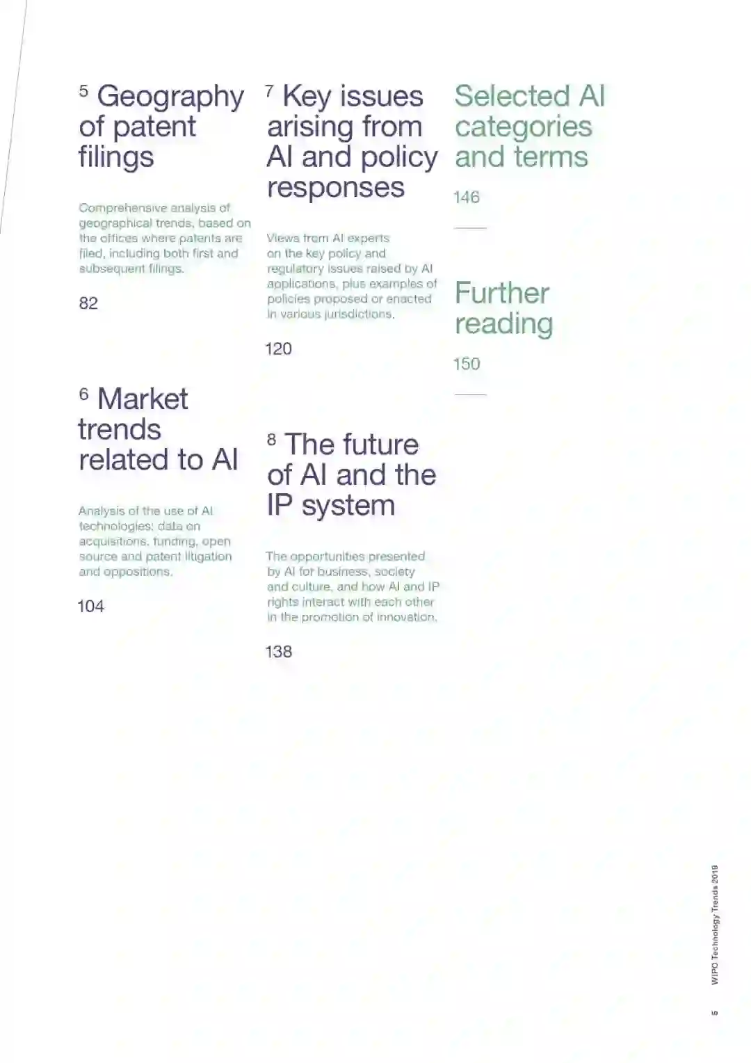 联合国世界知识产权组织WIPO发布了首份《2019技术趋势——人工智能报告》(WIPO Technology Trends 2019 – Artificial Intelligence)。报告显示,自20世纪50年代人工智能出现以来至2016年,科研人员已提交超过34万份人工智能发明专利申请,发表的科学出版物超过160万篇(部)。而这其中的专利超过半数是2013年以后公开的。其中在国别专利总申请量方面,美国、中国、日本排在前三位。