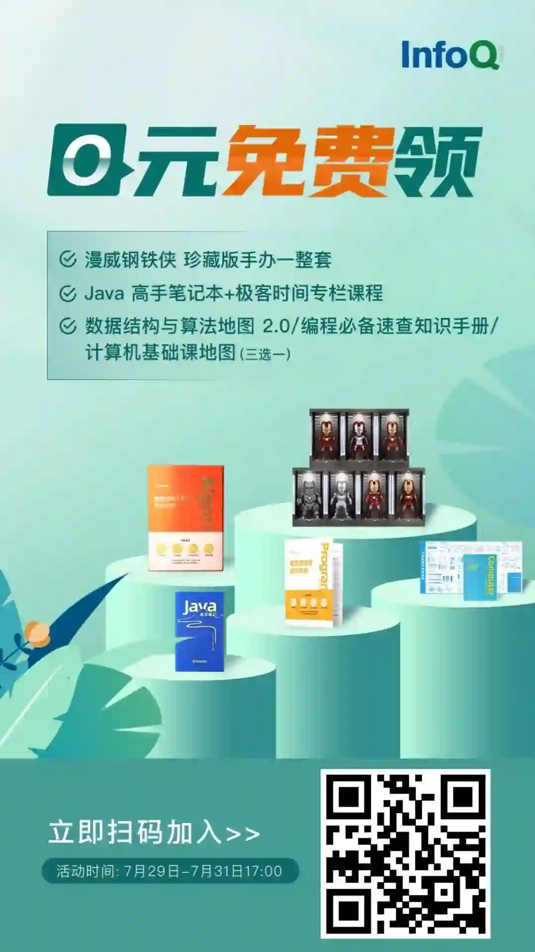 InfoQ 粉丝专享福利来喽!各位小伙伴可以扫描下方海报二维码「进群」,即有机会获得漫威钢铁侠(珍藏版)手办一整套、Java 高手笔记本 + 极客时间专栏免费课程、数据结构与算法地图 2.0/ 编程必备速查知识手册 / 计算机基础课地图等技术必备知识手册。不仅有很多超值奖品还可以和 InfoQ 的读者一起畅所欲言,和编辑们零距离接触。扫描海报二维码了解更多活动详情,快来加入我们吧!