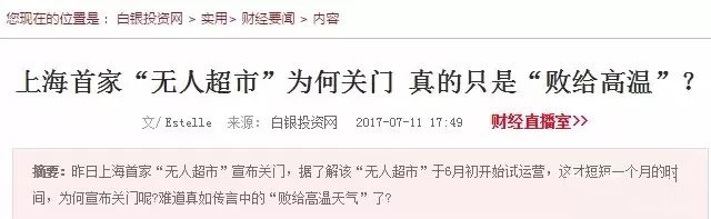 为了突破现状,我们开始借助科技创新进行商业升级。比如前段时间热炒的无人超市,从快捷程度上来讲,这些好像确实方便了我们的购物,但是来看下面几个媒体报道的新闻截图: