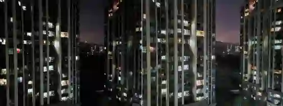 再看夜间表现,左侧为正常模式拍摄,细节清晰,暗部噪点控制得当,右边为专业夜景模式。