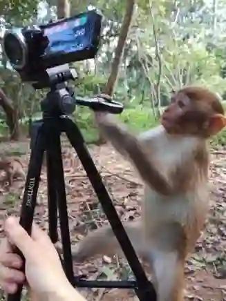 出野外就会知道,相比于爬树,猴子们更爱爬的是你的三脚架(摄影:中山大学伍乘风)