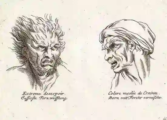 一本19世纪关于面容的书描述了两种视觉情感。左:完全绝望。 右:愤怒与恐惧混合。