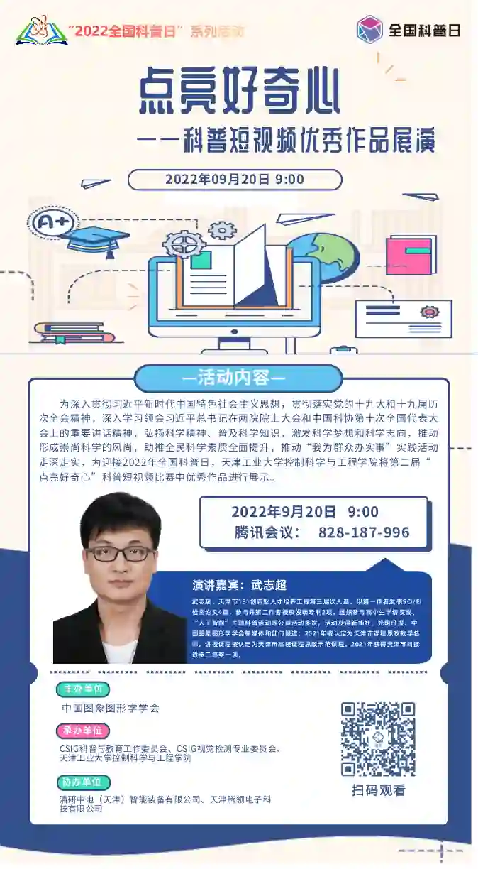 【2022全国科普日】“走进中小学科普图像处理知识”讲座将于9月26日举办