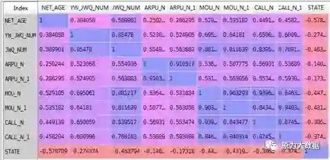 *字段说明:NET_AGE(网龄)、JWQ_NUM(交往圈人数)、MOU_AVE(本月和上月平均通话时长)、STATE(1:低稳;0:中高稳)