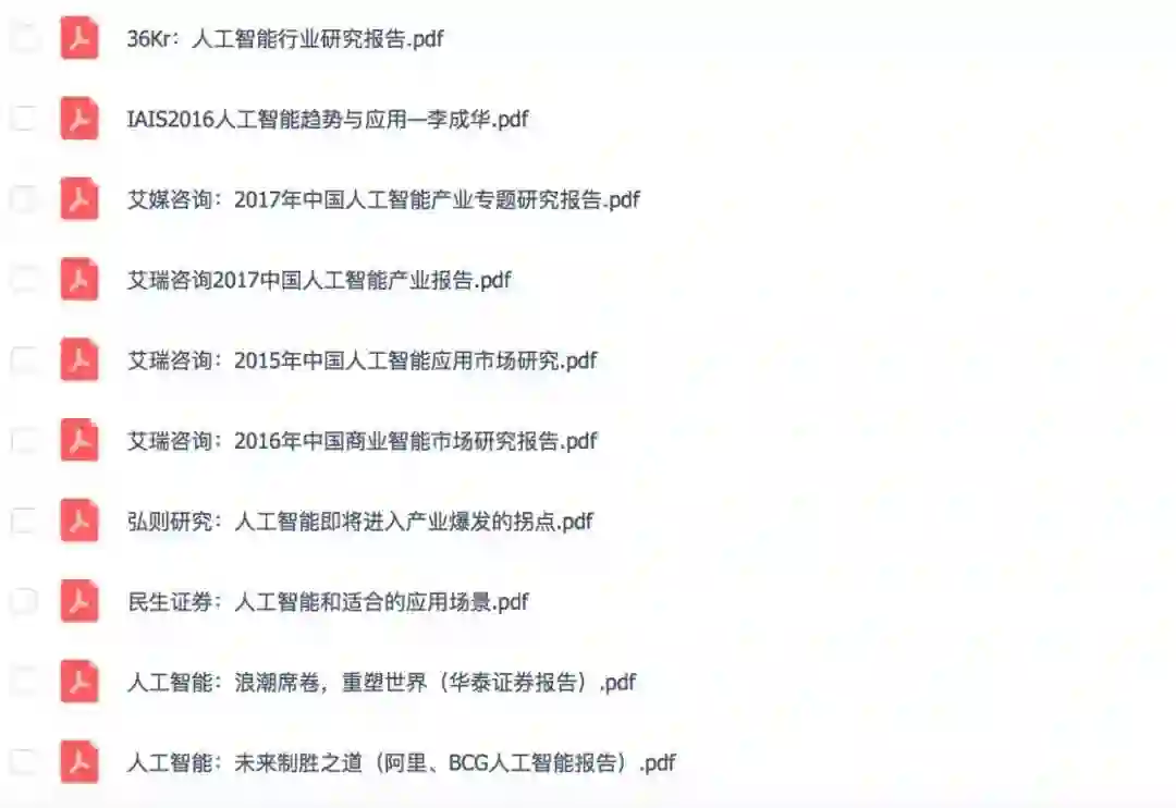 为了各位最全面了解人工智能第一手信息,特以给大家收集整理了50余篇各行业关于人工智能的发展及研究报告行业重磅报告,仅供大家参阅。